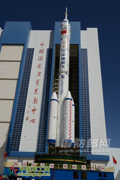 中國載人航天工程新聞發(fā)言人今天宣布,執(zhí)行我國首次載人交會對接任務(wù)的神舟九號飛船、長征二F遙九火箭組合體,已從酒泉衛(wèi)星發(fā)射中心載人航天發(fā)射場技術(shù)區(qū)垂直轉(zhuǎn)運至發(fā)射區(qū)。這標志著天宮一號與神舟九號載人交會對接任務(wù)已進入最后準備階段,根據(jù)計劃,神舟九號飛船將于6月中旬擇機發(fā)射。