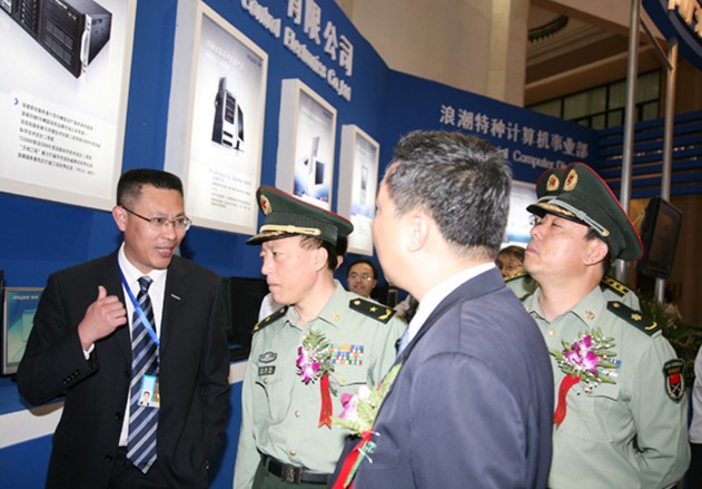 展會期間,總裝備部國際合作部部長宋科峰少將、工業(yè)和信息化部周子學總經濟師、國家國防科技工業(yè)局軍貿與外事司譚銳副司長、中國電子信息產業(yè)集團有限公司盧明副總經理等首長和領導親臨浪潮展臺,趙瑞東副總裁為參觀領導詳細介紹了浪潮特種計算機產業(yè)的發(fā)展歷程,獨有的加固技術和多款自主創(chuàng)新產品。浪潮特種計算機的強環(huán)境適應性,高可靠性和高安全性,得到了參觀首長和領導的高度贊賞。