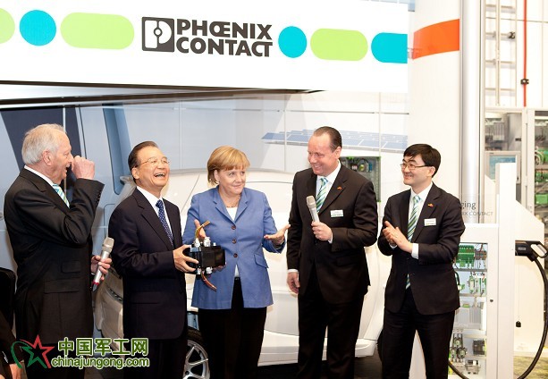 北京時間4月23日下午16時(柏林時間4月23日上午10時),中國總理溫家寶與德國總理默克爾,共同參觀菲尼克斯電氣在漢諾威展會的展臺,并特別觀摩了菲尼克斯電氣中國公司自主研發的EV-BC 750V/400A大電流換電連接器,目前該連接器已成功應用于薛家島的電動汽車智能充換儲放一體化示范電站”工程的電動汽車充、換電站系統項目中。