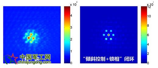 圖3 七單元光纖激光相干組束的傳輸控制實驗結果(遠場)