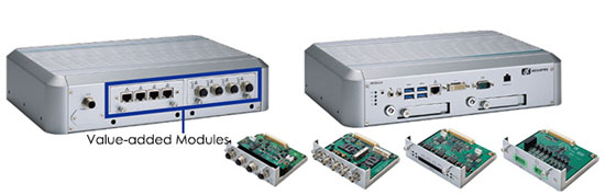 全功能智慧交通專用嵌入式計算機tBOX500-510-FL配備1組GbE區域網絡埠、4組高速USB 3.0埠、1組COM埠、1組DVI-I埠、麥克風輸出/輸入、4組天線孔、1組PoE電源輸入界面、1組遠端電源開關、防水M12或鳳凰接頭電源輸入埠與1組還原鍵等豐富的輸入/輸出界面設計。此車載解決方案系統獨特的增值模塊 (VAM) 設計,即使需客制的I/O模塊,也可以在短時間內完成;提供4埠乙太網絡供電、4埠GbE區域網絡、4埠隔離式RS-232/422/485、8-in/8-out隔離式數位輸入/出、4埠隔離CANbus 2.0A/B、5埠BNC (4埠video-in & 1埠audio-in) 等增值模塊,以快速滿足多種智慧交通應用領域。