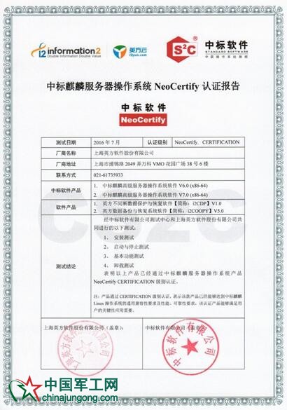 英方與中標軟件的兼容性認證