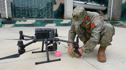 此次夏令營中,莒口鎮(zhèn)武裝小院精心策劃了 “疊軍被” 展示與體驗、無人機(jī)吊裝水球模擬滅火演示、“穿越火線” 接力賽等豐富互動環(huán)節(jié)。