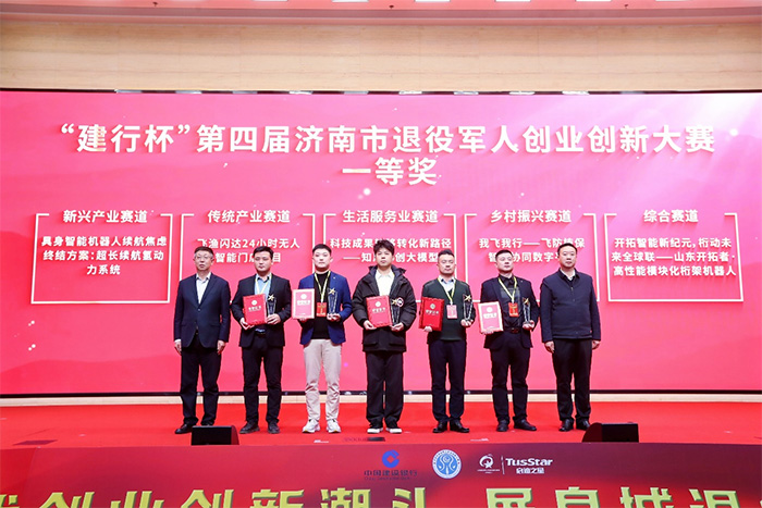 12月10日,“建行杯”第四屆濟南市退役軍人創業創新大賽頒獎儀式在中國建設銀行股份有限公司濟南分行成功舉辦。濟南市退役軍人事務局、濟南市教育局、濟南市工業和信息化局、濟南市人力資源和社會保障局、濟南市農業農村局,濟南市總工會、共青團濟南市委等7個活動主辦單位以及活動支持、承辦單位建設銀行濟南分行、啟迪之星有關負責同志為大賽獲獎項目和獲得“優秀組織獎”的6個單位頒獎。