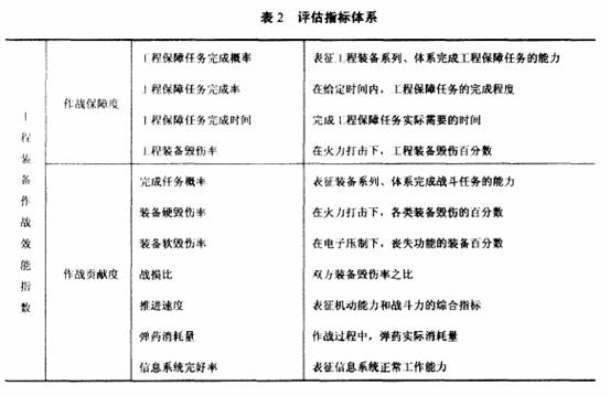 3.2工程裝備系統(tǒng)作戰(zhàn)效能評估指標(biāo)體系