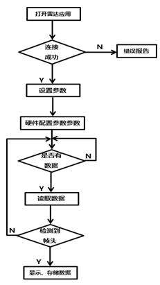 系統進入正常工作狀態后,硬件設備會將采集的數據源源不斷地傳回主機事先開辟的緩存內,接著對數據進行預處理,進而檢測每一幀數據的幀頭,將檢測到的每一幀數據存放入另一塊緩存,進行數據修復,用于系統的實時顯示和存儲操作,并將事先開辟的緩存做清空處理,準備接收新的數據。應用程序流程圖下圖所示。