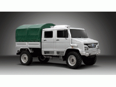 該車載重2.35噸(總重6.5噸),采用短頭駕駛室,可搭載國產136kW柴油共軌電噴發動機,也可搭載進口135kW或160kW柴油發動機,配有非獨立懸架門式橋,變剛度大行程螺旋彈簧,采用全時全輪驅動,裝有軸間和輪間差速器和差速鎖,并裝備有中央充放氣系統,氣頂油盤式制動器。