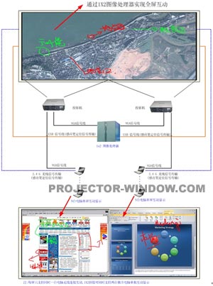 本案中,部隊采用了一套Accuon NovaVista I 系列屏幕 100寸 1X2 帶全屏互動功能的強光屏幕。系統連接圖如下:
