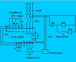 采用 PI7600系列變頻器使電磁制動三相異步電動機變頻調(diào)速可以實現(xiàn)上述的工藝要求。