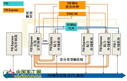 以PXI為基礎(chǔ),PXI Express提供了更多的定時(shí)和同步功能——100MHz的差分系統(tǒng)時(shí)鐘、差分信號傳輸以及差分星形觸發(fā)總線。采用差分時(shí)鐘和同步,PXI Express系統(tǒng)中儀器時(shí)鐘的抗噪聲性能進(jìn)一步提高,并且可以以更高速率傳輸數(shù)據(jù)。因此,除了標(biāo)準(zhǔn)的PXI定時(shí)和同步信號外,PXI Express機(jī)箱應(yīng)提供這些額外的定時(shí)和同步功能。