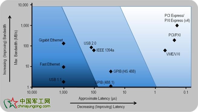 圖2. 利用PCI Express提供的更高的數(shù)據(jù)帶寬和更低的傳輸延遲,PXI Express系統(tǒng)可以更好滿足高頻應(yīng)用、高速數(shù)字接口以及高速圖像采集等新的應(yīng)用需求。