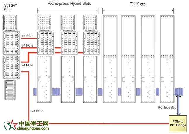 當(dāng)PCI Express技術(shù)被集成到PXI中,基于PXI Express實(shí)現(xiàn)許多新應(yīng)用的同時(shí),許多現(xiàn)有的PXI應(yīng)用并不會得益于PXI Express的性能提升。比方說,諸如數(shù)字萬用表(DMM)、開關(guān)模塊、工業(yè)I/O、低速總線接口、以及許多主流的發(fā)生器和分析儀等I/O應(yīng)用并不需要背板新增的帶寬。因此,PXI Express規(guī)范的一個(gè)非常有價(jià)值的方面就是PCI以及PCI Express信號都可以被路由到新的插槽中去。其結(jié)果是, 擁有PXI模塊的用戶也可以把基于PXI規(guī)格的儀器插入PXI Express的機(jī)箱,從而保持之前的投資, 儀器廠商也不需要針對新的PXI Express背板而重新設(shè)計(jì)所有的現(xiàn)有板卡模塊, 與此相反,儀器廠商會繼續(xù)生產(chǎn)符合PXI信號標(biāo)準(zhǔn)的產(chǎn)品,因?yàn)槟壳暗腜CI總線架構(gòu)可以滿足這些模塊的數(shù)據(jù)帶寬需求并且所有的混合插槽都支持PCI總線信號(圖3)。
